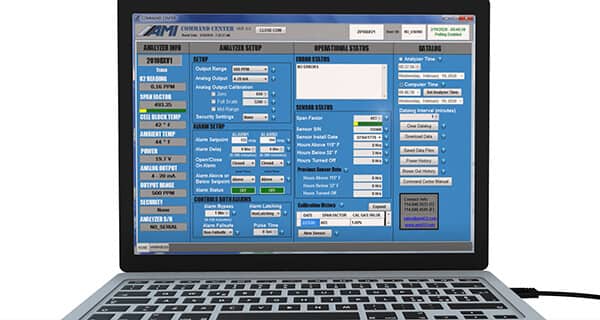 指揮中心 該軟件可在 AMI 分析儀上運行并允許用戶訪問功能: 校準詳情 報警配置 具有可調間隔設置的數據記錄器