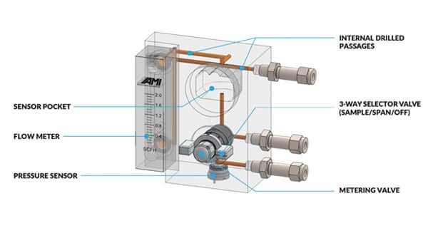 緊湊無泄漏設計-這種獨特的采樣系統方法幾乎消除了所有潛在的泄漏路徑,同時優化了流動效率。 樣品系統和傳感器袋直接加工成一個實心金屬塊,并與精密鉆孔的交叉氣體通道互連,從而無需使用較長的管道和易泄漏的壓縮接頭。 獨特設計的計量閥和流量計直接集成到這個緊湊的塊中。
