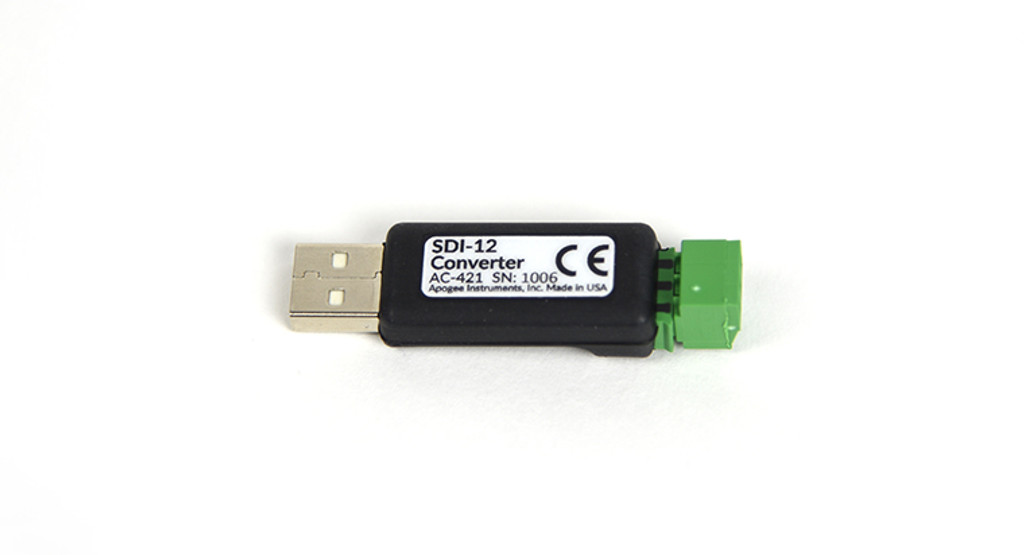 AC-421的一側(cè)有一個USB接口,可以插到電腦上。AC-421的另一側(cè)有+ 12v out, GND和SDI-12數(shù)據(jù)通道,用于連接任何標(biāo)準(zhǔn)SDI-12傳感器(為了正確操作,請先連接地線)。