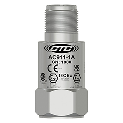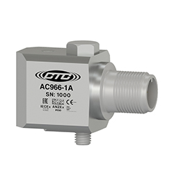 低電容本質安全雙輸出加速度計,加速度和溫度,頂部出口3針連接器,100 MV/G,10 MV/°C,±10%