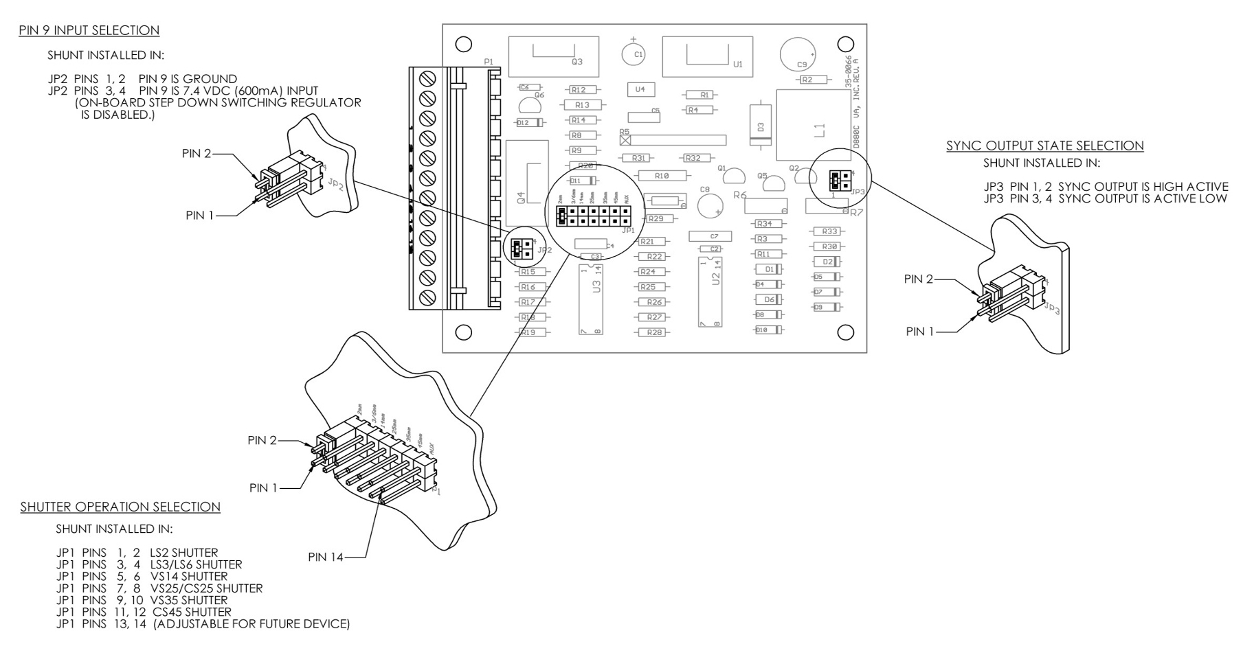 引腳 9:用于快門框接地或外部低電壓輸入,跳線可選。