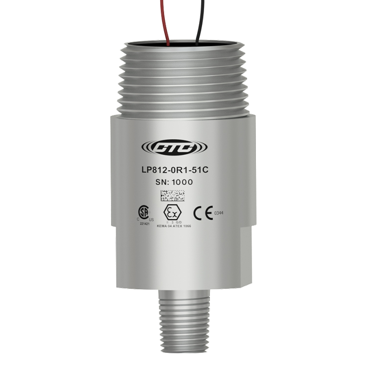 低電容,本質安全回路功率傳感器,4-20毫安輸出與加速度中的振動成比例,頂部出口帶飛線