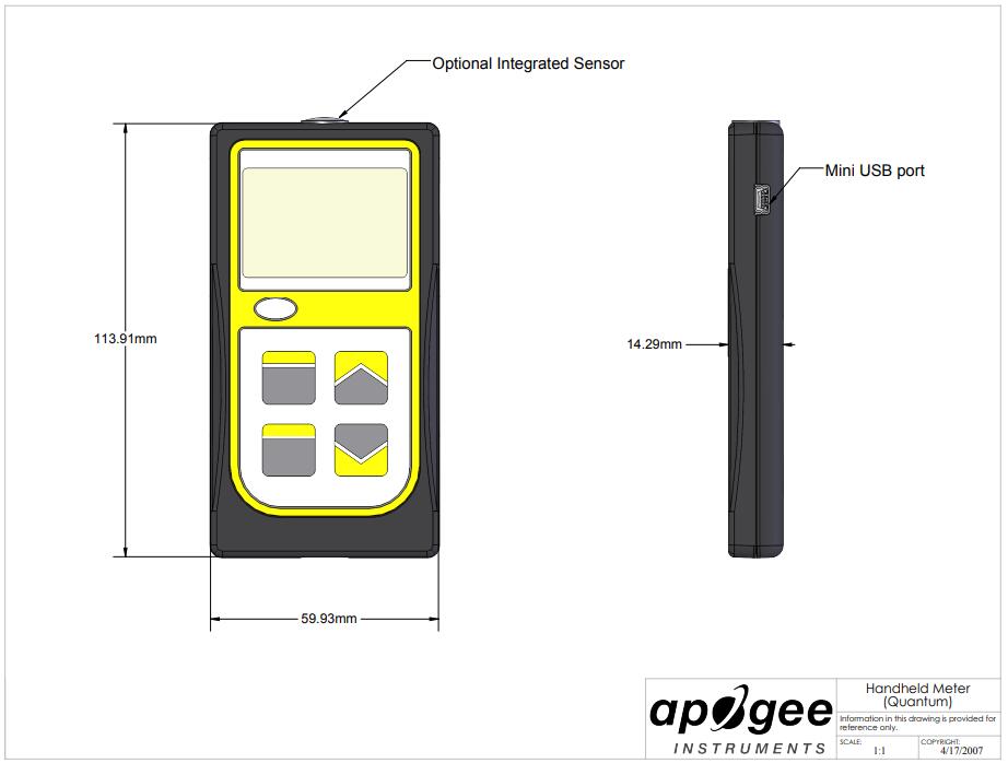 堅(jiān)固且易于使用:Quantum 傳感器頭由機(jī)加工鋁制成,并用環(huán)氧樹脂灌封,可在包括水下在內(nèi)的惡劣環(huán)境中使用多年。手持式儀表通過電纜連接,可顯示實(shí)時讀數(shù)、記錄樣本并記錄平均強(qiáng)度和日光積分 (DLI) 測量值。與傳感器頭不同,手持式儀表不防水。