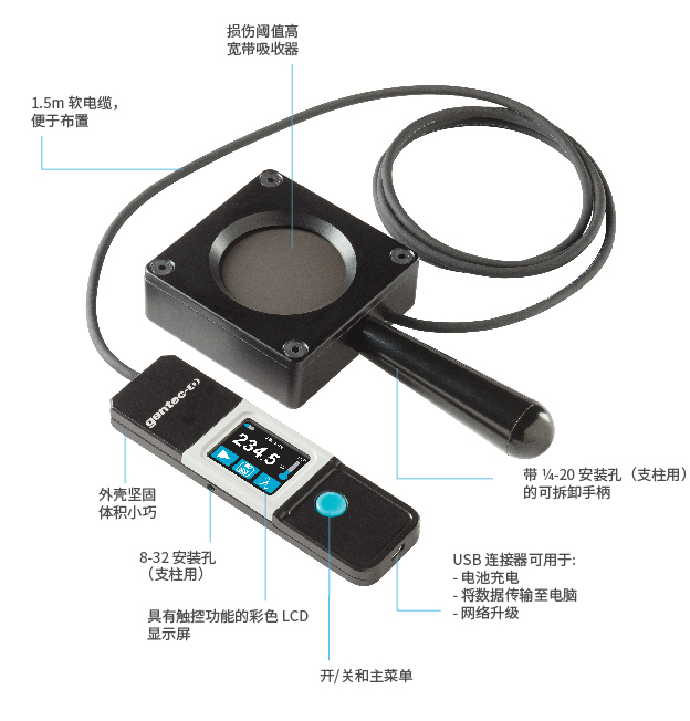 用于高功率的 PRONTO 系列替代了現在停產的 FLASH 系列。PRONTO 型號具有相同的激光測量功能,但采用新改良的電子技術,能夠記錄數據、增加校準點,并且可以通過 USB 連接進行數據傳輸和電池充電。