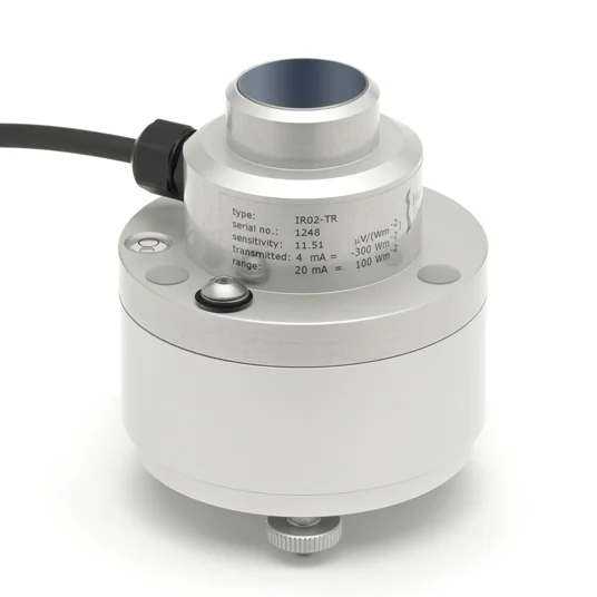 IR02-TR pyrgeometer采用黑色涂層的熱傳感器,帶有太陽盲過濾器的平板硅窗和陽極氧化鋁體。IR02-TR有一個車載加熱器。加熱可以防止熱測儀窗口上的冷凝水,當冷凝水發生時,會導致大的測量誤差。IR02-TR靈敏度高。有了變送器,典型的數據記錄儀就不再造成測量的不確定度