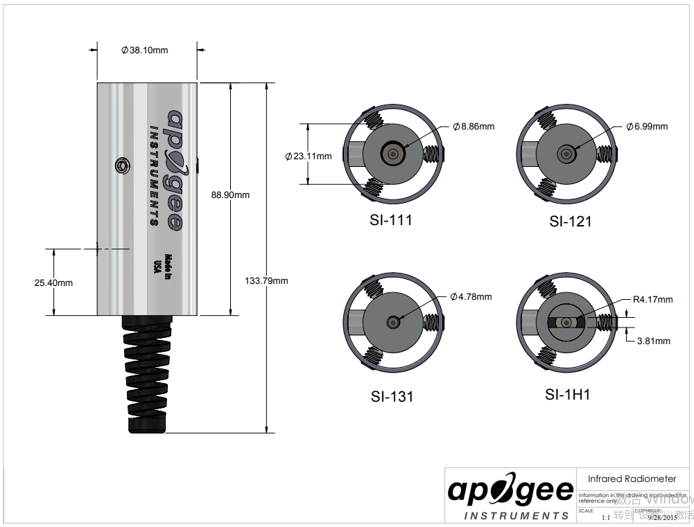 SI-121 是一款非放大模擬傳感器,具有電壓輸出 和高質量電纜終端,采用預鍍錫尾纖引線,可輕松連接到數據記錄器和控制器。該傳感器具有 18° 半角視野和 0.6 秒的響應時間。典型應用包括用于植物水分狀況估計的植物冠層溫度測量、確定結冰條件的道路表面溫度測量以及能量平衡研究中的地面(土壤、植被、水、雪)溫度測量。 傳感器包括距離頭部 30 厘米的 IP68 航海級不銹鋼電纜連接器,以簡化傳感器拆卸和更換以進行維護和重新校準。SI-121-SS 設計用于安裝Apogee AM-250 商業安裝支架。