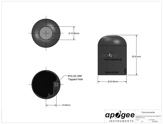 傳感器可以通過 USB 2.0 A 型插頭連接到臺式機或筆記本電腦,與 ApogeeConnect 軟件(Windows 兼容,XP 及更高版本;Mac 兼容,10.10 及更高版本)一起使用。隨附的 Apogee 軟件讓用戶可以控制數據記錄和校準設置,提供實時輸出顯示和短波輻射測量圖,并允許將數據集保存為 csv 文件。