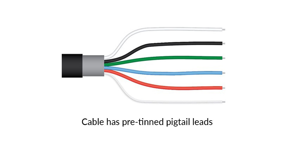 | 電纜 | 5 m 雙導體屏蔽雙絞線,可提供 5 m 倍數的附加電纜;TPR 夾克(高耐水性、高紫外線穩定性、寒冷條件下的柔韌性);尾纖引線 |