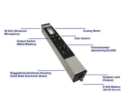CTRL UL101 檢漏儀將超聲波 (40 kHz +/- 1 kHz) 轉(zhuǎn)換為可聽范圍并輸出到耳機。所有其他頻率都經(jīng)過過濾,因此在嘈雜的工廠環(huán)境中,即使是很小的空氣/氣體、真空或制冷劑泄漏也可以被檢測和精確定位。