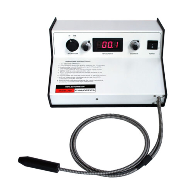 The instrument is calibrated with an on-board reflectance standard. Measurements are made by touching a soft probe to the surface being measured. The reflectance displays immediately on a 31/2 digit bright red digital meter. The soft probe is connected to the instrument by fiber optics. Most reflectors are used to illuminate an area to improve visibility at night for the eye. Thus, the reflectometer has similar spectral (photopic) response as the eye.