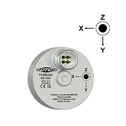 Low Cost Triaxial Accelerometer, Top Exit 4 Pin Mini-MIL Connector, Follows Cartesian Phase Coordinate System, for Modal & ODS Analysis, 100 mV/g, ±15%