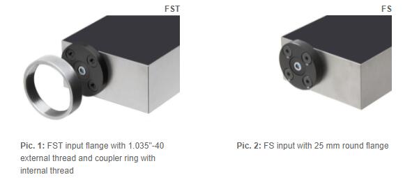 The free space input is designed as a 1.035 "- 40 threaded flange (FST) with threaded coupling ring or a 25 mm round flange (FS) without thread. Both types are widely compatible with optical accessories from different manufacturers, such as lenses, tubes, cage systems, optical adapters, etc.