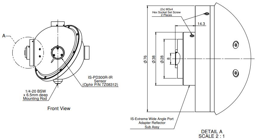 The IS6-D-IR-170 is a 6” integrating spheres (5.3” inside) with a Germanium detector for use with highly divergent (D) beams up to 170°. The IS6-D-IR-170 comes with a IR detector, is calibrated from 700 to 1800nm and can measure up to 30W.