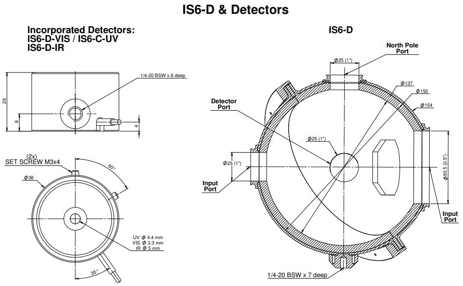 IS6-D-IR integrating sphere drawing: