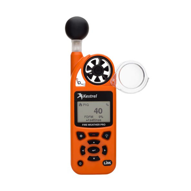 The Kestrel 5400 Fire Weather Meter Pro WBGT offers a large, high-resolution and contrast display and easy font readability. It also includes a built-in dual color backlight, extra-strong polycarbonate lens and AA battery operation, along with LiNK iOS and Android wireless connectivity and app support. Like all Kestrel meters, the Kestrel 5400 Fire Weather Pro WBGT is drop-proof, dust-proof, waterproof and able to withstand harsh environments without damage – so it can so it can work as hard as you do.