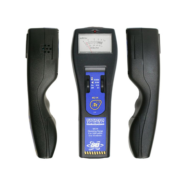 The MC1K is an ergonomic handheld survey meter using a built-in energy compensated GM detector. It detects gamma and x-rays up to 1000 mR/hr over 4 selectable ranges. The energy compensated Geiger counter affords the detector a more linear response to gammas and x-rays over the full range.