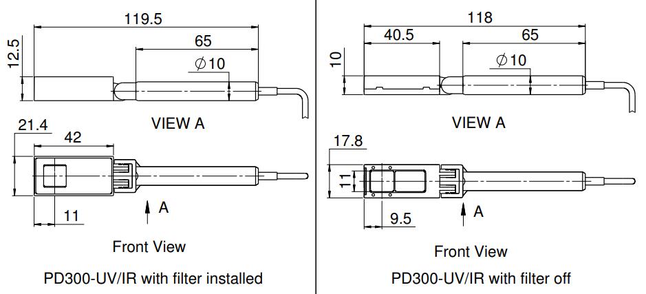 The PD300-UV-193 is a wide spectral range photodiode laser measurement sensor. It has a 10x10mm aperture with swivel mount and a removable filter. Without filter, its spectral range is from 200 to 1100nm and its power measuring range is from 20pW to 3mW. With filter the spectral range is 220nm to 1100nm and the power range is 2μW to 300mW. There is an additional calibration point at 193nm with accuracy ±6%. The sensor comes with a 1.5 meter cable for connecting to a meter or PC interface.