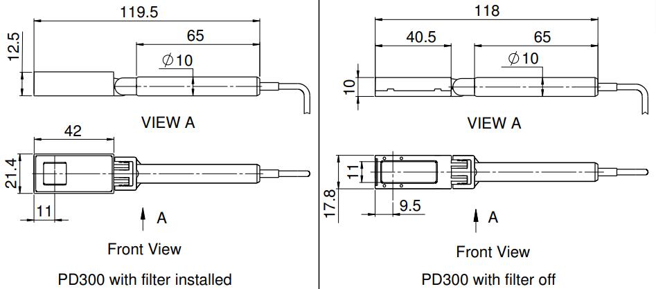 The PD300 is a general purpose photodiode laser measurement sensor with swivel mount and a removable filter and has a 10x10mm aperture. Without filter, its spectral range is 350 - 1100nm and its power measuring range is 500pW - 30mW. With filter the spectral range is 430nm - 1100nm and the power range is 2μW - 300mW. It has the exclusive Ophir automatic background subtraction feature. The sensor comes with a 1.5 meter cable for connecting to a meter or PC interface.