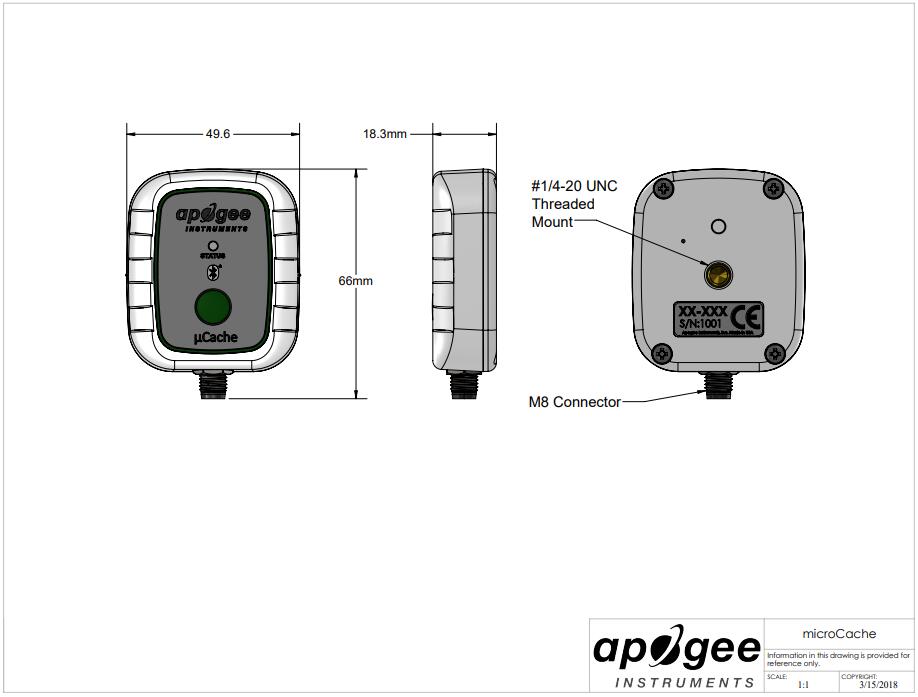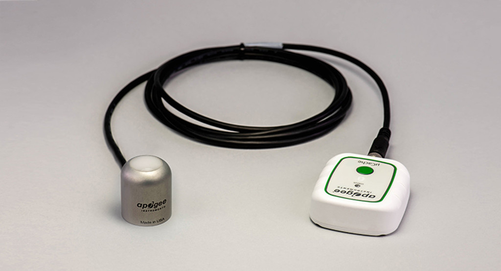 The new SQ-610 ePAR is used to measure the newly defined 400-750 nm ePAR radiation range. Research shows that this range has photosynthetic activity beyond the traditional 400-700 nm range. The new AT-100 microCache (μ Cache) micro recorder is a rugged, independent battery powered device that can collect more than 400000 data points, and use our free Apogee Connect application to connect your sensor to your iOS or Android device through Bluetooth. The application allows you to perform real-time measurements, set custom data recording intervals, monitor daylight integration and draw charts, ensure light cycles, download data sets, and more.