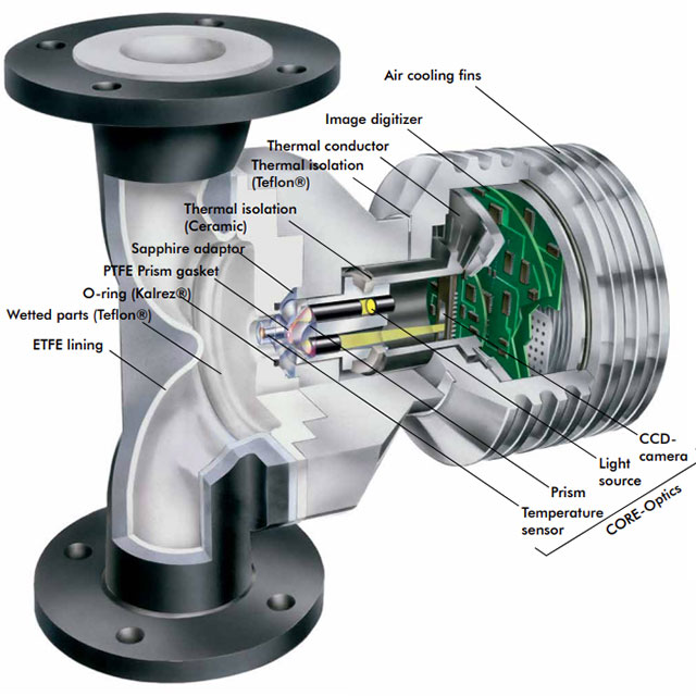 Accurate and reliableThe Vaisala K?PATENTS® Online Refractometer PR-23-W/M measurement technology utilizes solid-state optical elements and a CCD detector to digitally measure the refractive index. The measurement accuracy is ±0.0002 RI, which corresponds to 0.1% (percent by weight).