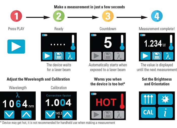 Thanks to a low noise level and high damage threshold, the PRONTO-250-FLEX can measure powers from 0.5 W to 250 W.