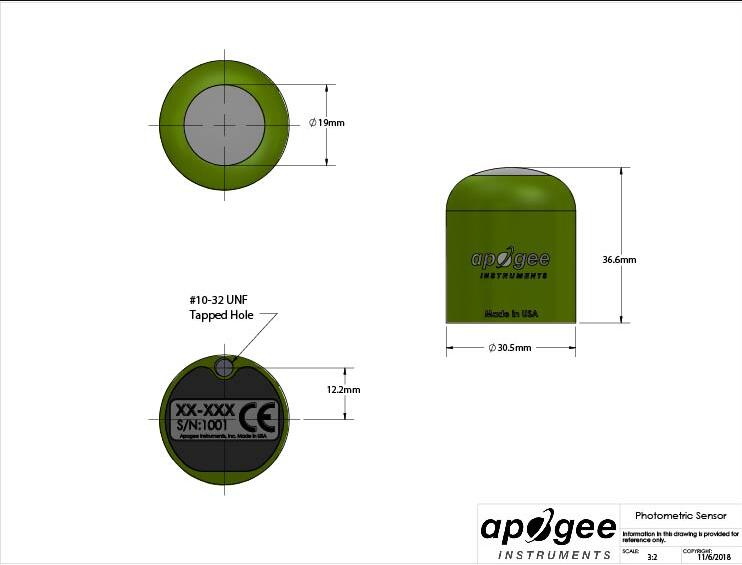 The SE-100 Photometric sensor is a self-powered lux sensor with a range of 0-150000 lux over a 0 to 200 mV range. The sensor features a rugged, aluminum housing that is fully-submersible and is built to withstand harsh conditions, and high-quality cable terminating in pre-tinned pigtail leads for easy connection to dataloggers and controllers. The sensor cable includes an IP68 marine-grade stainless-steel cable connector to simplify sensor removal and replacement from permanent installations for maintenance and calibration. Typical applications of photometric sensors include measuring light levels for human vision in offices, sports arenas, hospitals, museums and more.