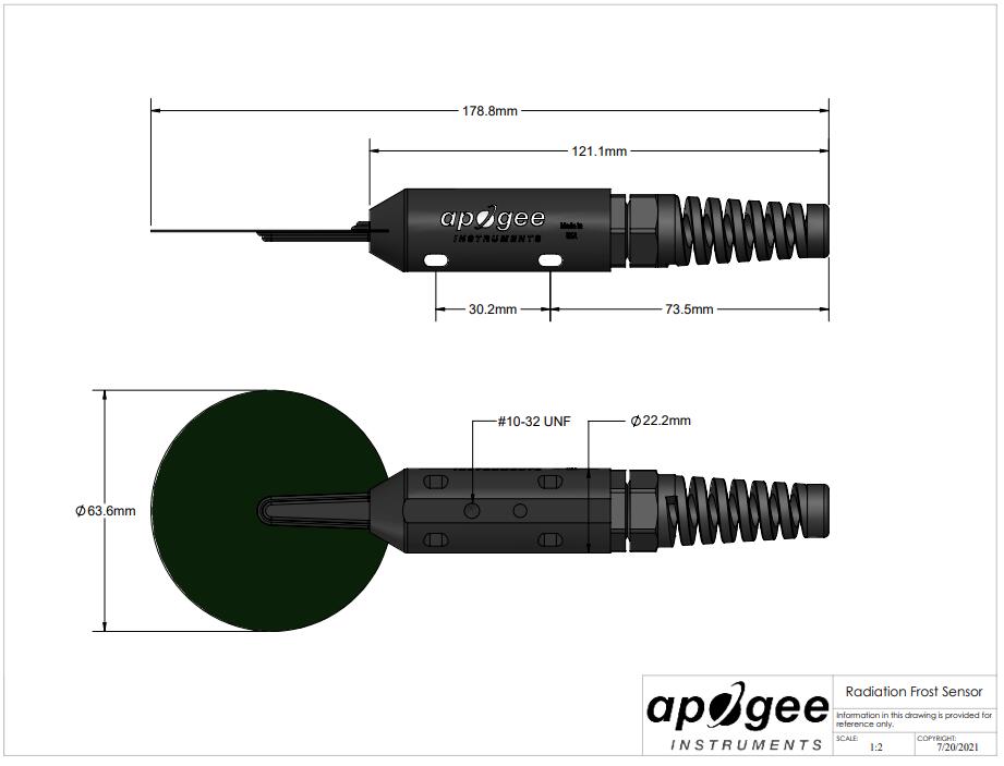 The SF-421-SS has an SDI-12 digital output and high-quality cable terminating in pre-tinned pigtail leads for easy connection to dataloggers and controllers. The detector contains a precision thermistor that mimics a leaf. The SF-421-SS provides close approximations of leaf temperatures and has a temperature measurement range of -50 to 70 ℃. Typical applications include leaf temperature estimates in cropped fields, orchards, and vineyards. Leaf temperatures returned by the detector can then be used to alert growers to the potential of frost damage to crops. Sensor includes IP68 marine-grade stainless-steel cable connector 30 cm from head to simplify sensor removal and replacement for maintenance and recalibration. While most users choose to mount the SF-411-SS to a branch or stick using zip ties, the AM-260 mounting fixture can be used as a more permanent mounting option.