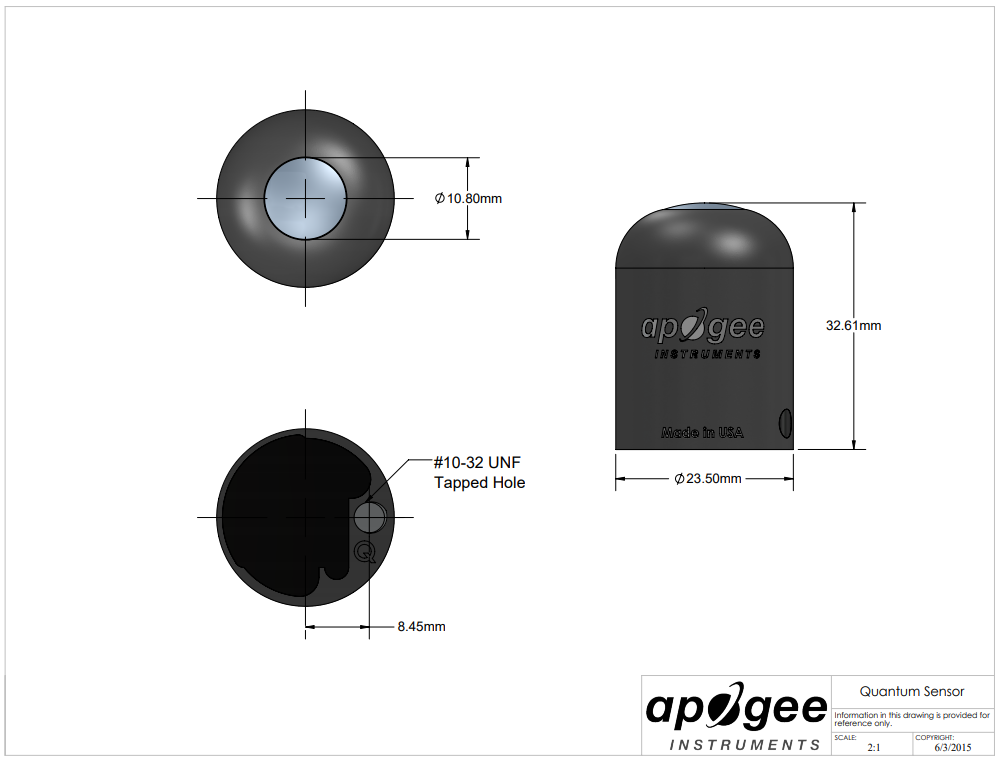 | Non-linearity | Less than 1 % (up to 4000 μmol mˉ2 sˉ1) |
