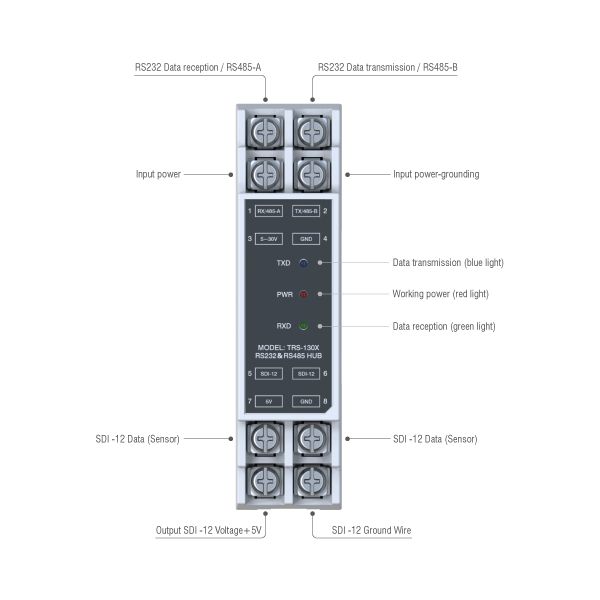 The SDI-12 Interface Protocol Converter, an advanced device widely used in fields such as agriculture, environmental monitoring, meteorological research, and hydrological measurement, etc., has features of high reliability, stable performance, and easy operation, which can effectively convert data between SDI-12 interface and other interfaces, providing users with a convenient and fast user experience.