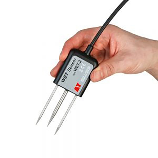 For portable applications, readout and data storage are handled by the HH2 Moisture Meter. Alternatively, the WET Sensor can be connected to the GP1 Data Logger or GP2 Data Logger and Controller, making it possible to monitor growing conditions over a period of hours, days or longer. The smart relay capability in these data loggers allows them to control water content in response to EC or temperature.