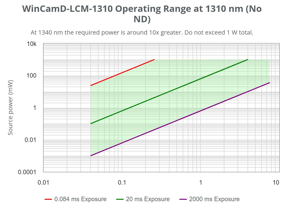WinCamD-LCM: 355 to 1150 nm WinCamD-LCM-1310: 355 to 1350 nm (includes long pass filter) WinCamD-LCM-TEL: 1480 to 1610 nm WinCamD-LCM-UV: 190 to 1150 nm |