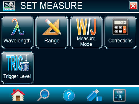 Measure mode: use this menu to decide what type of measurements will be displayed: average power, single shot energy, pulse-to-pulse energy, etc.