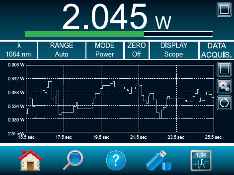 | Statistics | Current value, max, min, average, standard deviation, RMS & PTP stability, pulse #, repetition rate and average power |